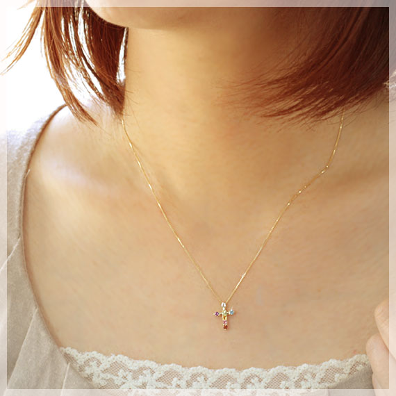 レインボ−(七色)なら、たいていの服&靴に合ってしまうから不思議!神聖な雰囲気をたたえたクロスは、女性からイノセントな魅力を引きだします。