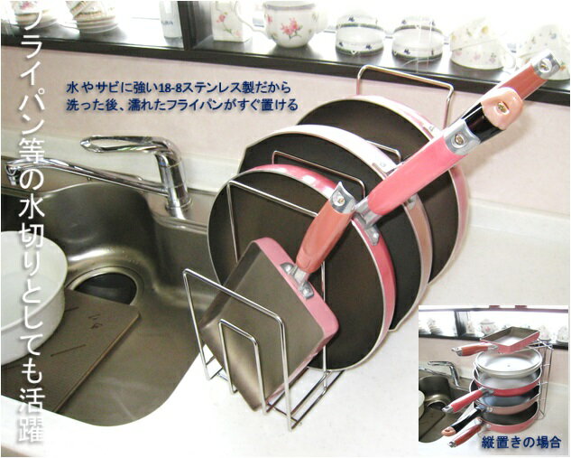 【皆様の声から生まれました!】 ●「たくさんのフライパンをスペースの少ない所に、 かさねて収納したい! 丈夫なものでなければ、かさねることはできない! どうすればいいのか?」 ……そんなお声にお応えして、できた商品です! ●かさねて収納しても、取り出しもスムーズにできるよう、 デザインしました。